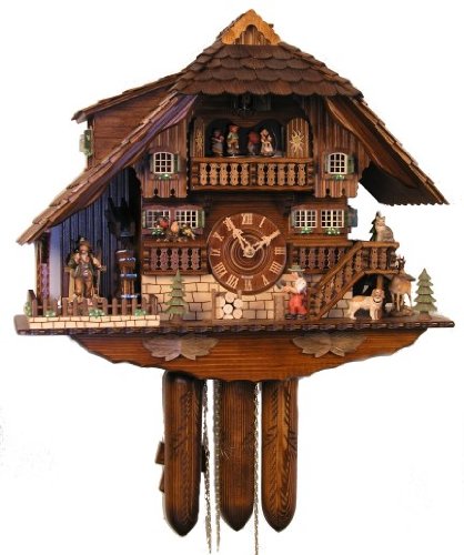 Colour: Walnut Size: 30 cm/12 inch Executions: Classic Wooden dial, wooden hands, wooden bird, and night shut off 2 years product warranty This cuckoo clock has an exclusive life-like wooden handpainted cuckoo. With certificate of authenticity from the Black Forest Clock Association (VdS). It has a mechanical REGULA movement from the marketleader SBS-FEINTECHNIK in the Black Forest/Germany. This is a extreme long-life rack strike movement. It allows turning the hands left and right without endangering the mechanics of the movement. The 1 day running time movement need to be wind up every day, that means you pull on the chains until the weights are up. The size refers only to the clock, without pendulum and weights.